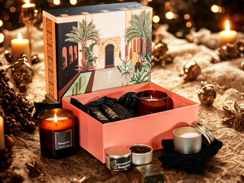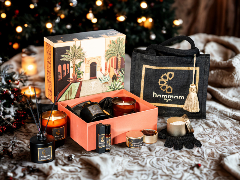 Un pack creado para que puedas disfrutar en casa de un auténtico ritual de bienestar inspirado en nuestro Hammam. Incluye una vela aromática, que invita a la calma; un perfume con notas cálidas y envolventes; y el trío esencial del ritual tradicional: jabón negro, sales naturales y guante de kessa, perfectos para una exfoliación suave que purifica y renueva la piel.