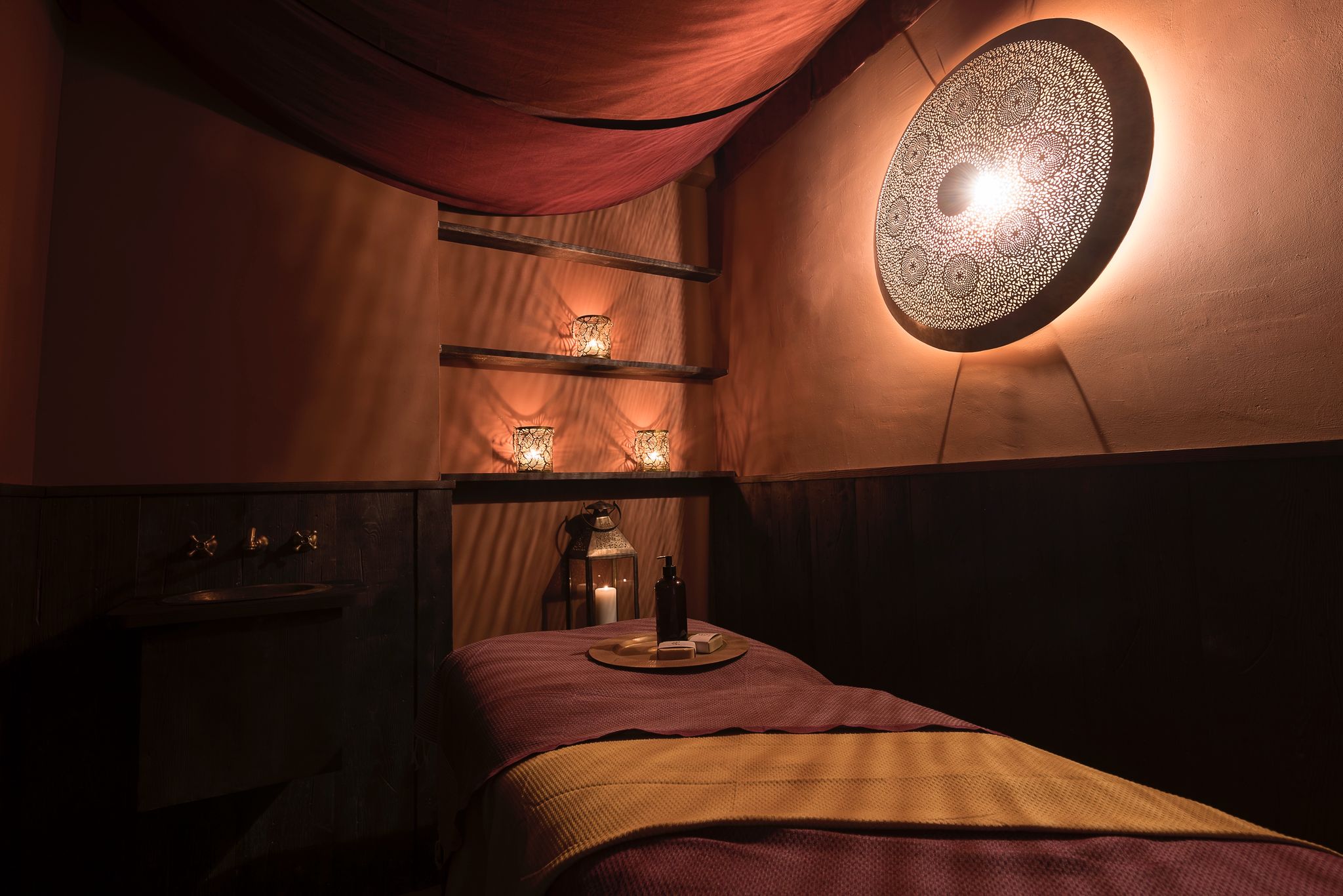 - Circuito Hammam Clásico: Recorrido libre por las termas de agua templada, caliente y fría. Luce una piel perfecta tras el tratamiento exfoliante del baño turco. Completa la experiencia saboreando un té marroquí a la hierbabuena en nuestra zona relax..